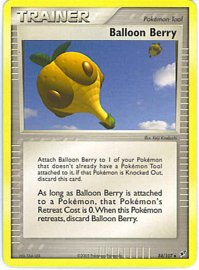 Evne Attach Balloon Berry to 1 of your Pokemon that doesn't already have a Pokemon Tool attached to it. If that Pokemon is Knocked Out, discard this card. As long as Balloon Berry is attached to a Pokemon, that Pokemon's Retreat Cost is 0. When this Pokemon retreats, discard Balloon Berry.