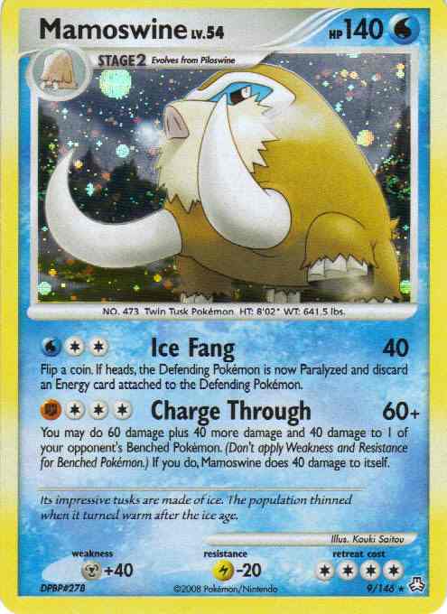 [CCCF] Charge Through (60+) You may do 60 damage plus 40 more damage and 40 damage to 1 of your opponent's Benched Pokemon. (Don't apply Weakness and Resistance for Benched Pokemon.) If you do, Mamoswine does 40 damage to itself.