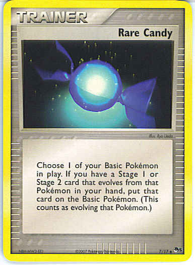 Evne Choose 1 of your Basic Pokemon in play. If you have a Stage 1 or Stage 2 card that evolves from that Pokemon in your hand, put that card on the Basic Pokemon. (This counts as evolving that Pokemon.)