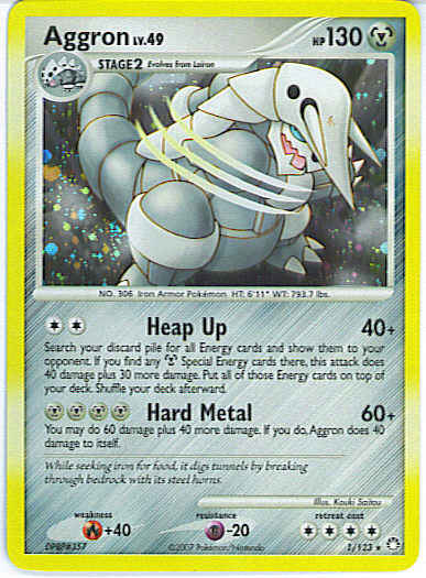 [MMMM] Hard Metal (60+) You may do an additional 40 damage to the Defending Pokemon. If you do, Aggron does 40 damage to itself.