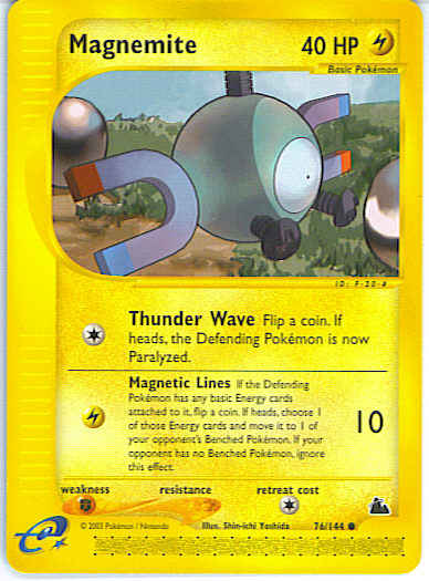 [L] Magnetic Lines (10) If the Defending Pokemon has any basic Energy cards attached to it, flip a coin. If heads, choose 1 of those Energy cards and move it to 1 of your opponent's Benched Pokemon. If your opponent has no Benched Pokemon, ignore this effect.