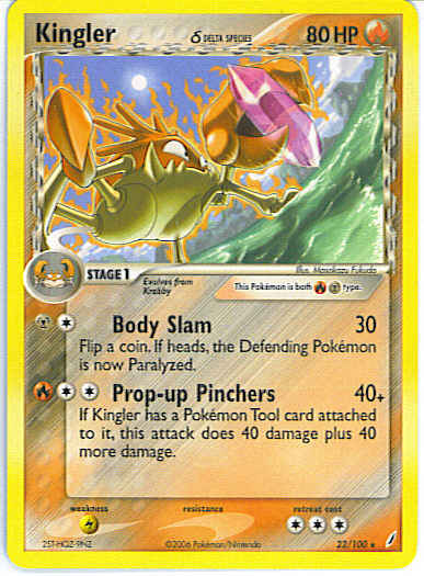 [[]CCR] Prop-up Pinchers (40+) If Kingler has a Pokemon Tool attached to it, this attack does 40 damage plus 40 more damage.