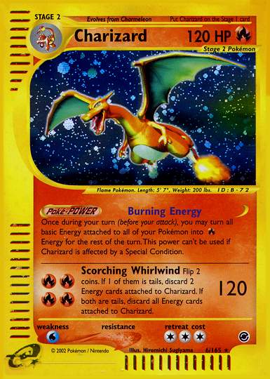[RRRR] Scorching Whirlwind (120) Flip 2 coins. If 1 of them is tails, discards 3 Energy cards attached to Charizard. If both of them are tails, discard all Energy cards attached to Charizard.
