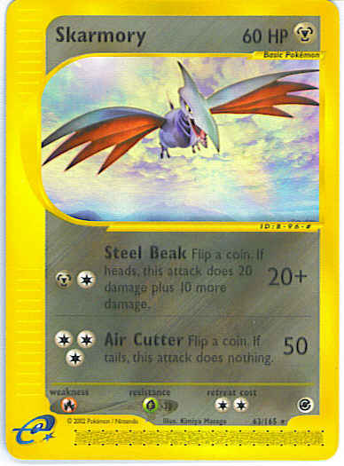 | Type | Metal | | Pokemon serie | Expedition | | Stadie | Basic | | HP | 60 | | Sjældenhed | Rare | | Tilbagetrækning | 2 | | Modstand | G | | Svaghed | R | | Kortnummer | 63 | | Evne |
