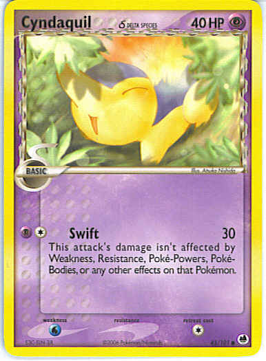 | Type | Psychic | | Pokemon serie | Dragon Frontiers | | Stadie | Basic | | HP | 40 | | Sjældenhed | Common | | Tilbagetrækning | 1 | | Svaghed | W | | Kortnummer | 45 | | Evne | [CP] Swift (30) This attack's damage isn't affected by Weakness, Resistance, Poke-Powers, Poke-Bodies, or any other effects on that Pokemon.